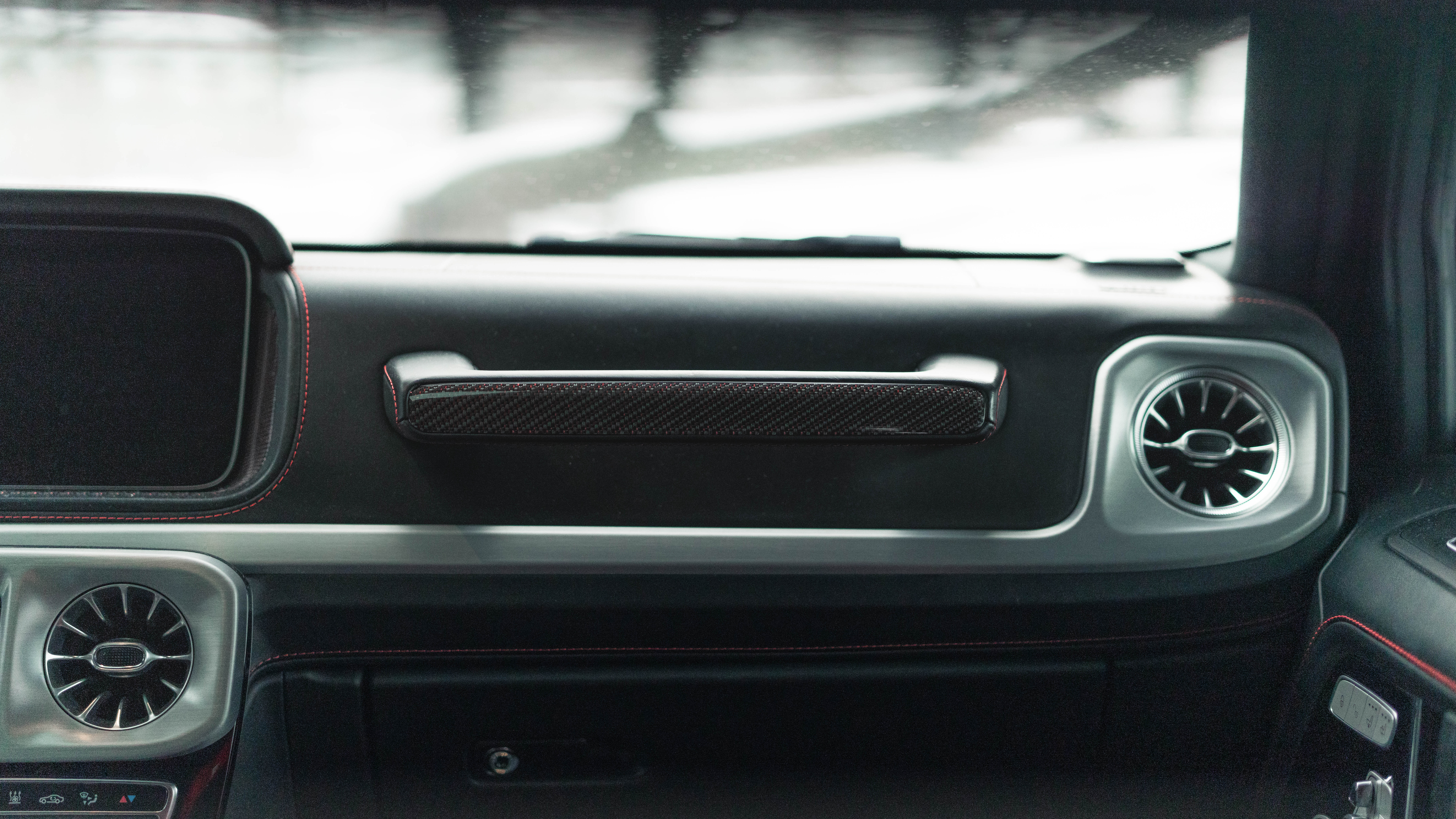 Wnętrze łączy luksus limuzyny z klimatem off-roadu. Skóra, karbon, cyfrowe ekrany i ambientowe oświetlenie tworzą wyjątkową atmosferę — surową, ale jednocześnie ekskluzywną.